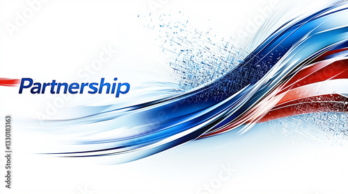 © imfotograf, Fototapeta premium A dynamic abstract wave of red, white, and blue flows across the image with the word "Partnership." The sleek digital effect symbolizes cooperation, trade, and diplomacy.