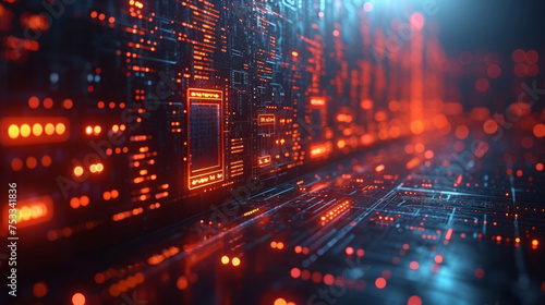Obraz premium A dynamic and futuristic cityscape filled with holographic screens and...