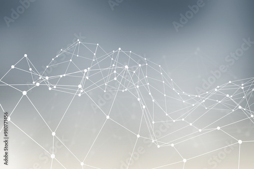 © themefire, Obraz premium A dynamic and intricate cyber grid background with a white wireframe of dots and lines on a gradient field symbolizing network connectivity