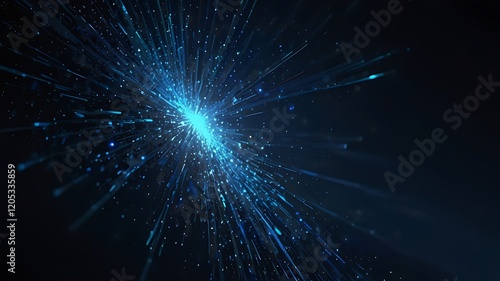 © Background, Obraz premium A dynamic burst of blue light particles against a dark background, suggesting energy and motion.
