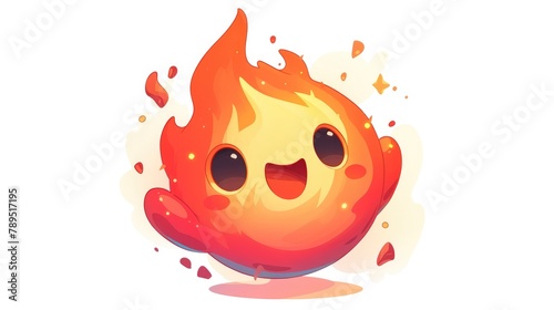 Fototapeta premium A dynamic cartoon fire flame icon emanating fiery red sparks stands out...
