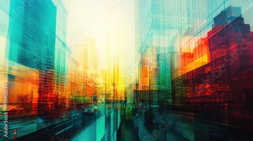 Fototapeta premium A dynamic cityscape with abstract colors reflecting movement and urban life,...