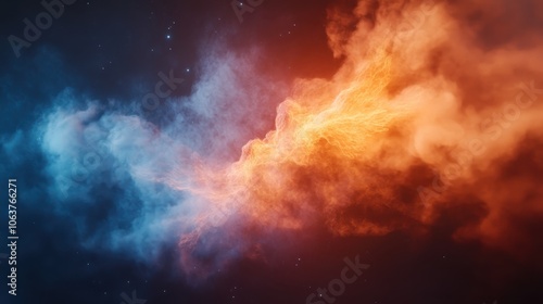 Fototapeta premium A dynamic cosmic scene depicts a clash of fiery and cool elements, creating a...
