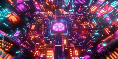 Obraz premium A dynamic digital environment showcases a network of colorful circuits...
