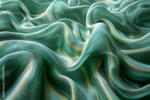 © Larisa AI, Obraz premium A dynamic display of flowing emerald green satin fabric with a graceful wave pattern and elegant sheen