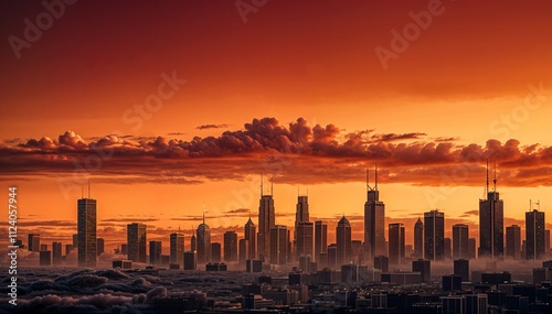© Panupat, Fototapeta premium A dynamic duotone city scape silhouete