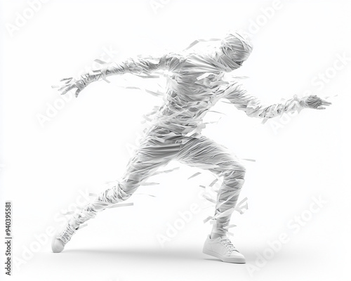Fototapeta premium A dynamic figure wrapped in translucent material, conveying motion and energy...