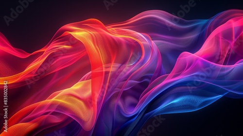 Obraz premium A dynamic, fluid composition of neon ribbons