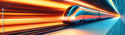 Fototapeta premium A dynamic, high-speed train racing through a futuristic tunnel, showcasing...