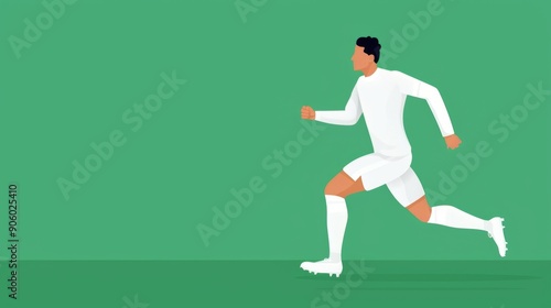 © Chananporn, Fototapeta premium A dynamic illustration of a soccer player in motion, showcasing agility and sportsmanship on a vibrant green background.