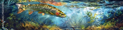 Naklejka premium A dynamic illustration of a trout darting through the water, its body a blur...