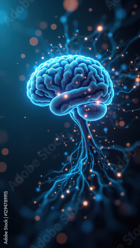 © Tameem, Obraz premium A dynamic illustration representing artificial general intelligence with a neural network structure.