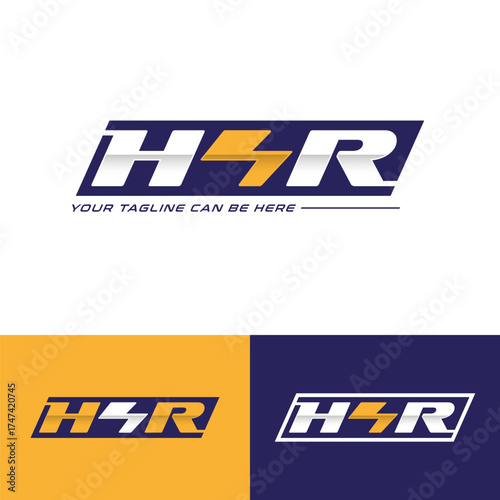 © yzor.std, Obraz premium A dynamic monogram featuring a bold "HSR" with a lightning bolt-shaped "S" that conveys speed, energy, and power. Ideal for tech, racing, or electrical brands.