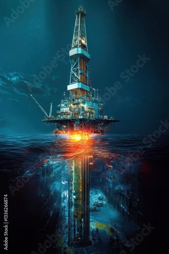 Obraz premium A dynamic perspective of a drillship's flare stack showcasing industrial...