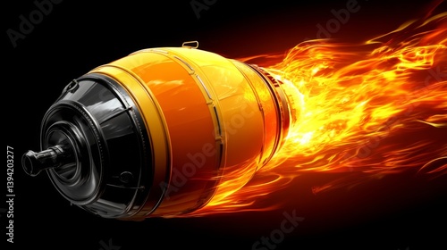 © Nataliya, Obraz premium A dynamic rocket engine with flames and smoke, showcasing powerful propulsion