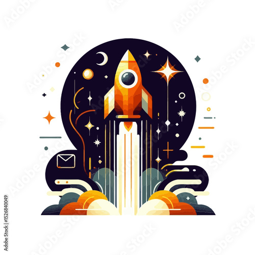Fototapeta premium A dynamic rocket launch illustration with stars and planets, perfect for...