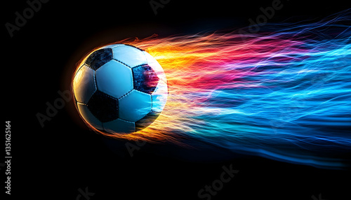 Obraz premium A dynamic soccer ball in motion, leaving a vibrant trail of colors against a...