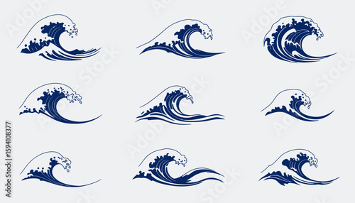 Obraz premium A dynamic vector illustration showcases a series of stylized blue water...