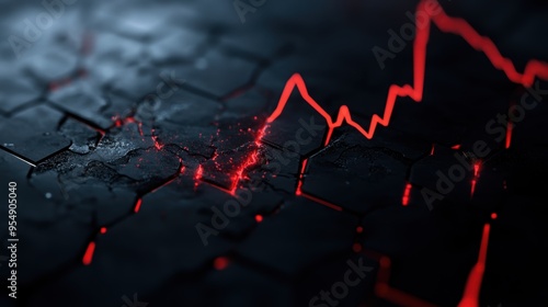 © MP-AI, Fototapeta premium A dynamic visualization of an upward trend represented with sharp red lines on a textured dark surface.