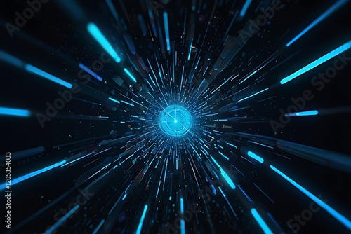 Fototapeta premium A dynamic visualization of light streaks converging towards a central point,...