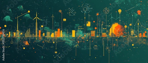 Obraz premium A dynamic visualization of sustainability with icons of clean energy...