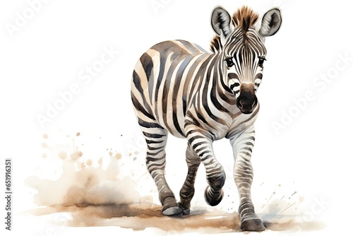 Fototapeta premium A dynamic watercolor painting capturing the graceful movement of a running zebra created with Generative AI technology