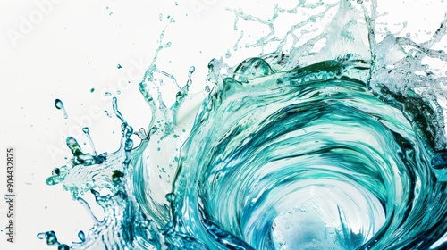 Fototapeta premium A dynamic whirlpool forms with vibrant blue and green colors, isolated against a white backdrop, creating a swirling motion