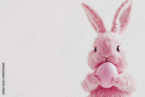 © Tina, Obraz premium A Easter bunny holding an Easter egg, isolated on a white background, in a simple style.