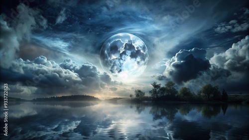 Fototapeta premium A eerie moonlit night with dark clouds and shadows, backdrop, spooky, moon,...