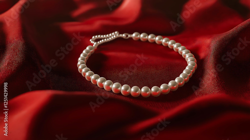 © Anthichada, Fototapeta premium A elegantly pearl necklace on a soft fabric