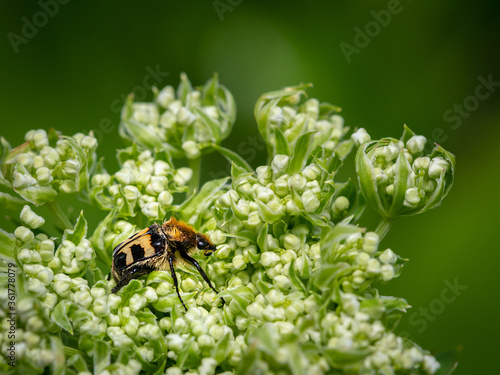 Fototapeta premium A Eurasian bee beetle sitting on a white flower