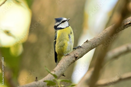 © D, Fototapeta premium A Eurasian Blue Tit (Cyanistes caeruleus) perched on a branch.