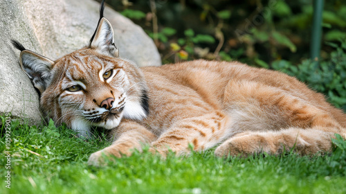 © Aysel, Fototapeta premium A Eurasian lynx lives at the Straubing zoo.