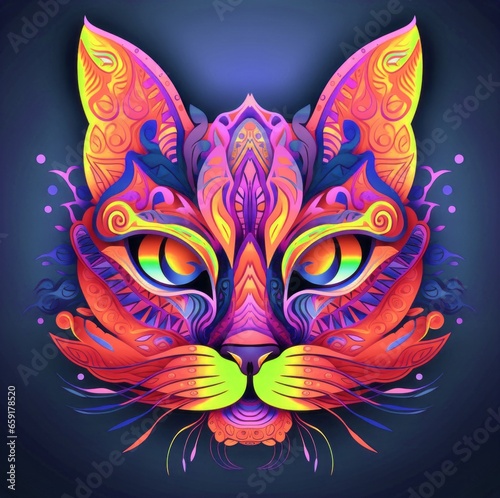 Naklejka premium A face of a cat with bright colors. An illustration of a cat with a mystical...