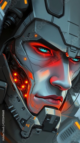 © Yudha Waskita, Fototapeta premium A face with a blend of technology and humans, sharp and captivating eyes.