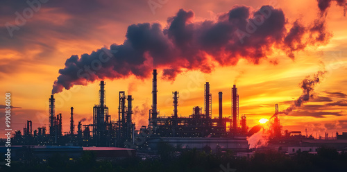 © Oksana_Latysheva, Naklejka premium A factory emitting plumes of smoke into the air