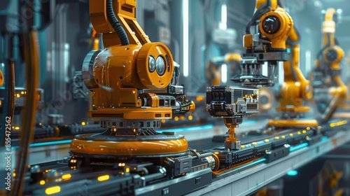 © G.Go, Fototapeta premium A factory with robots working on a conveyor belt