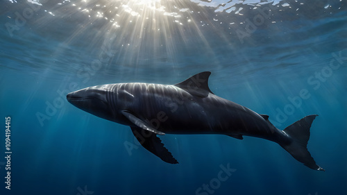 © Rezaul, Fototapeta premium A False Killer Whale (Pseudorca crassidens) swimming gracefully underwater ai