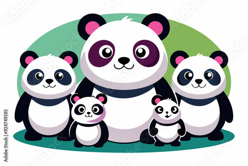 Fototapeta premium A Family of Cute Cartoon Pandas Standing Together