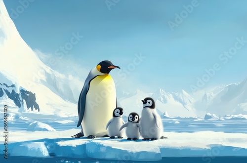 © b, Fototapeta premium A family of emperor penguins standing in the snow