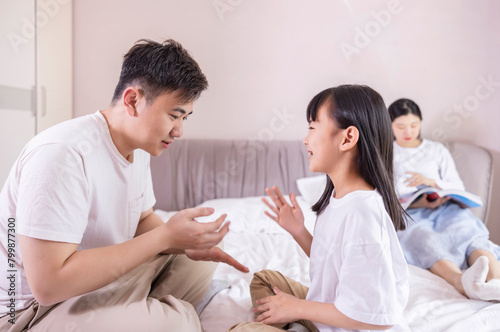 © 大 李, Obraz premium A family of three in the bed in the bedroom