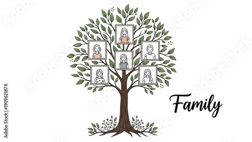 © RaNy, Obraz premium A family tree with five generations, each represented by a framed picture.