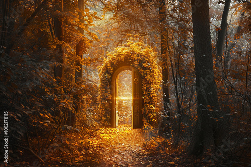 Fototapeta premium A fantastically beautiful door in forest leading to the unknown