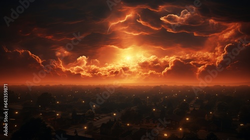 © Elle Arden , Fototapeta premium A fantasy landscape at sunset. Generative AI.