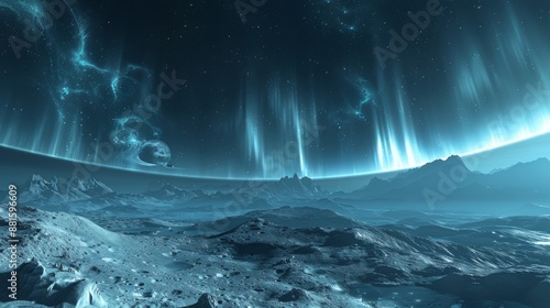 Fototapeta premium A Fantasy Planet with a Glowing Aurora Borealis