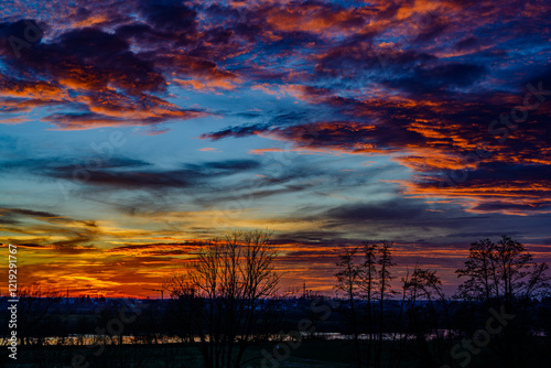 Fototapeta premium A farbenprächtiger Sonnenuntergang über der niederbayerischen Donau