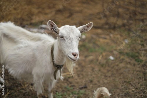 © Владимир Коврижник, Obraz premium A farmer with a black curly beard with his Anglo Nubian goats