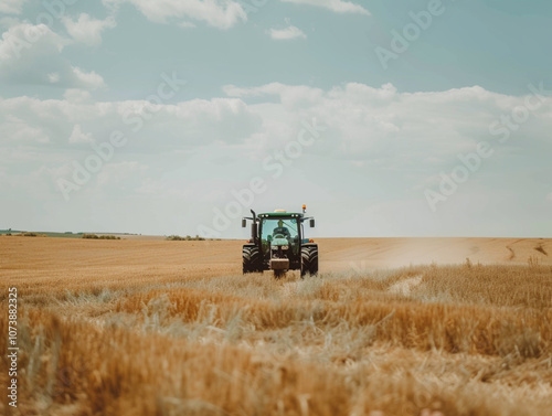 © Галина Нечипорук, Obraz premium A farmer working the fields on a tractor.