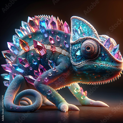 © idezignminno, Obraz premium A fascinating chameleon showcasing vivid colors, unique eyes, camouflage ability, and agile movements.