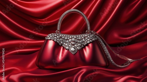 Fototapeta premium A fashion-forward diamond purse beautifully displayed on a silky red draped...